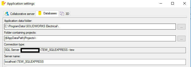 Firstly, you need to understand if you are currently working locally (SQL on your machine) or on a client/server basis (SQL on a server). To realise this, check on a client machine, within SOLIDWORKS Electrical > Tools > Application Settings…