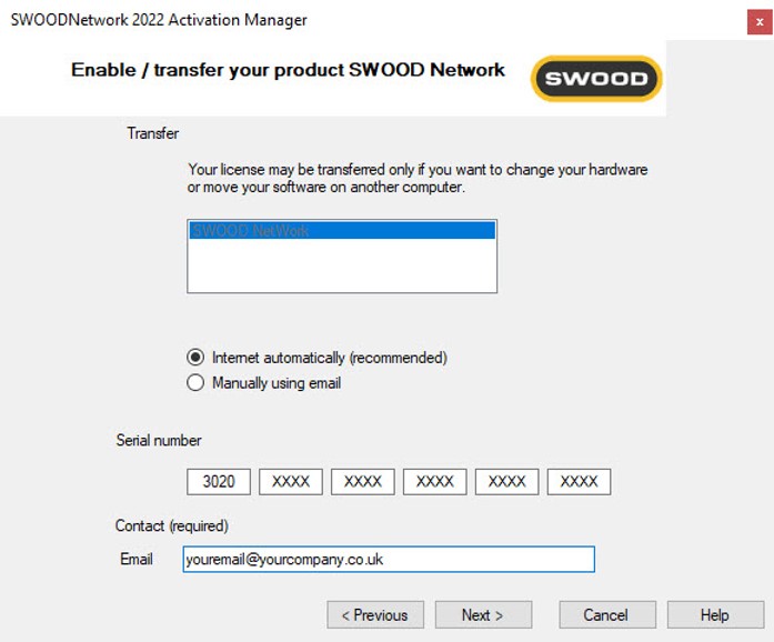 In SWOOD there are two main types of licence, the serial number for both types is 24 characters, for online licenses the serial starts with 3010 and for network licences it starts with 3020.