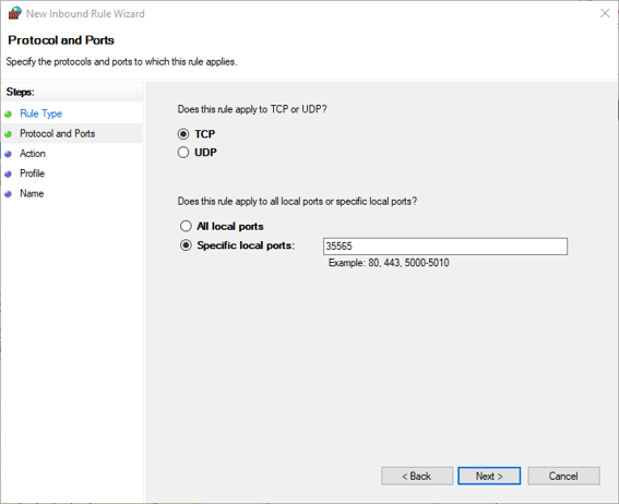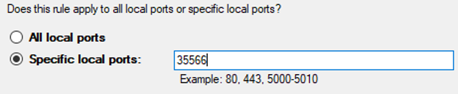 35565 and 35566 are the ports that need to be set. The name of the rules can