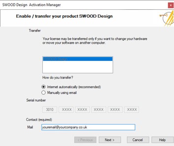 Tools > SWOOD Design/CAM > Help Transfer licence. Clicking