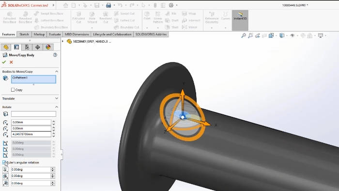 The move/copy body command is a versatile and much used tool of SOLIDWORKS designers, in 2023 there have been several enhancements to make it easier to control than ever. You can now utilise equations and global variables when setting dimensions for translations and rotations of bodies and these dimensions can be viewed and modified in the graphics area like other features.