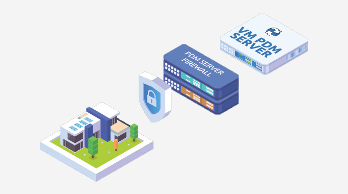 Site-to-site. A customer office firewall is connected directly to the firewall protecting the PDM server so that all internal, authenticated users are able to access PDM through the secure customer network.